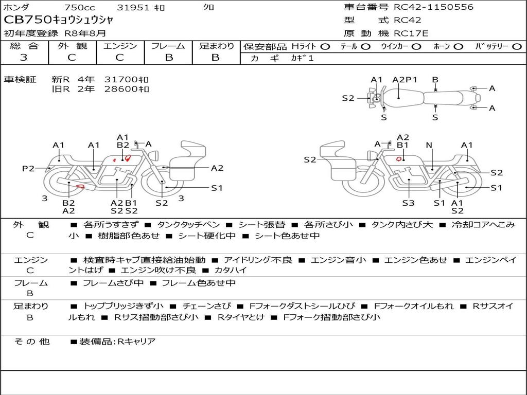 | Номер рамы / VIN | RC42-1150556 |