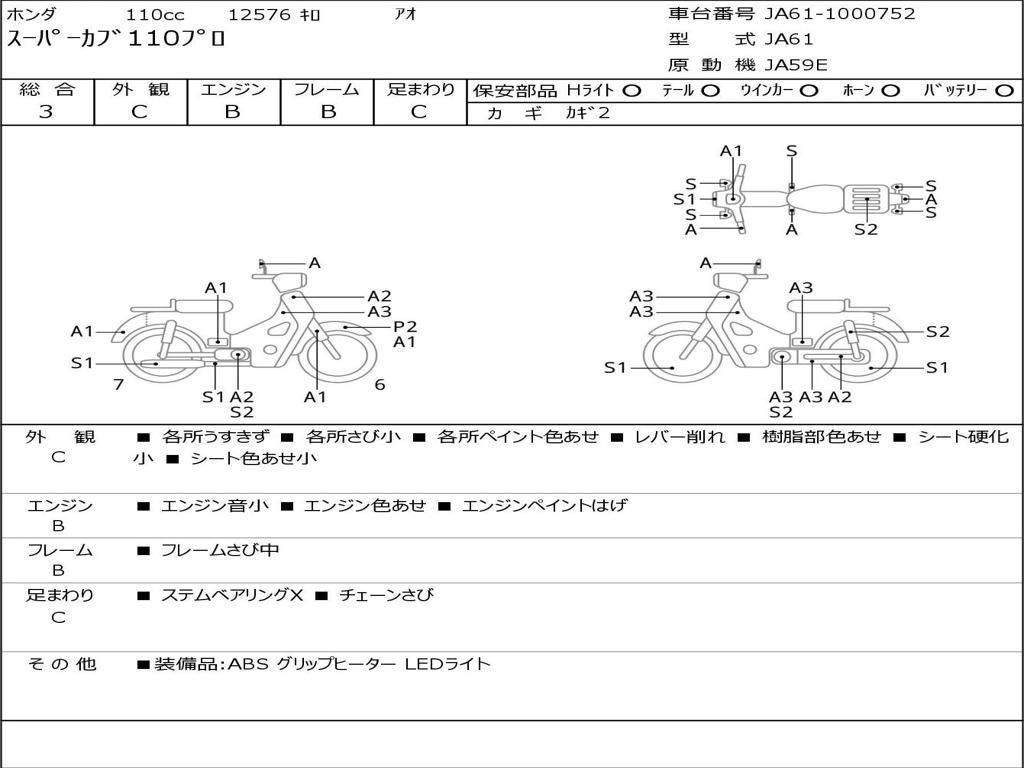 | Номер рамы / VIN | JA61-1000752 |