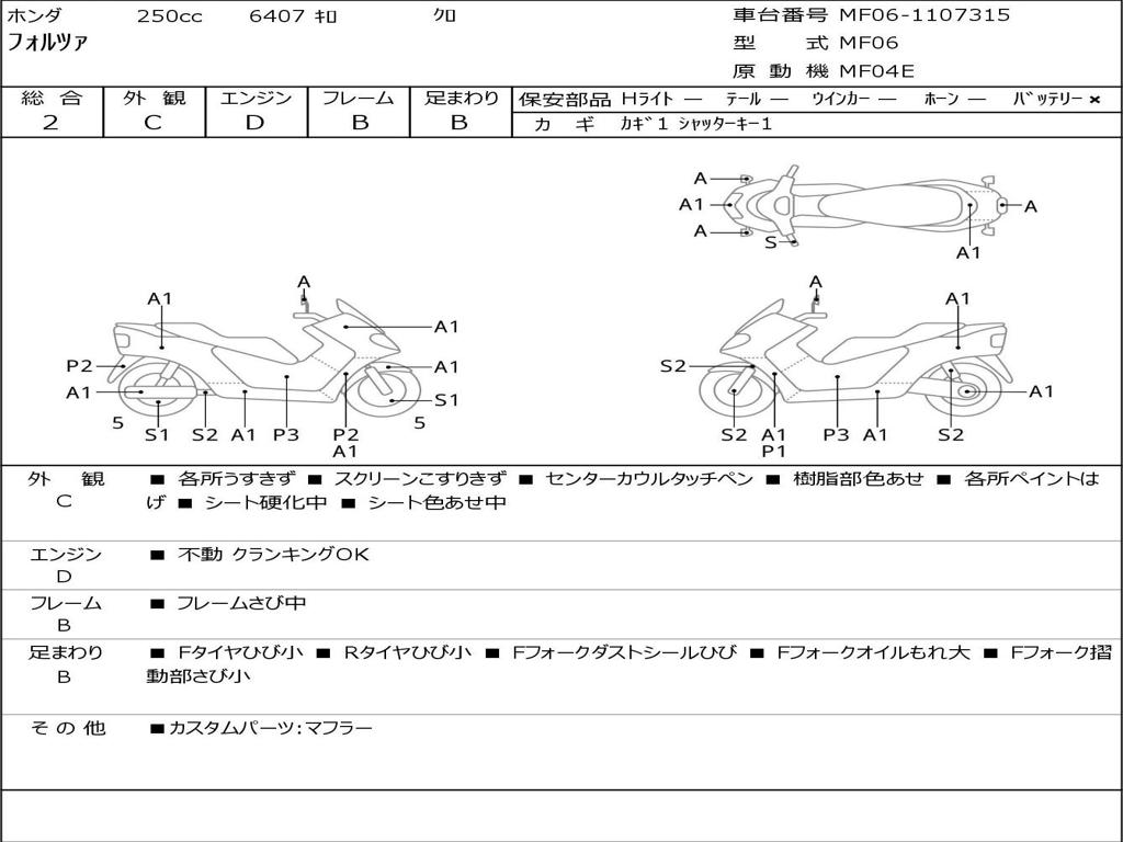 | Номер рамы / VIN | MF06-1107315 |