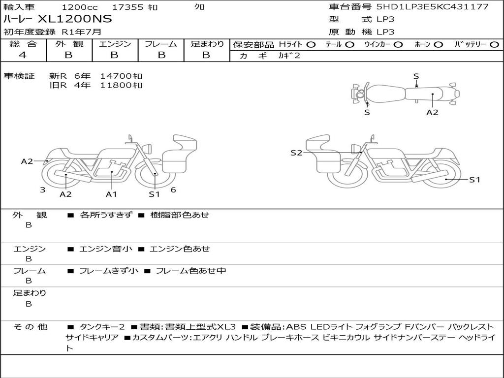 | Номер рамы / VIN | 5HD1LP3E5KC431177 |