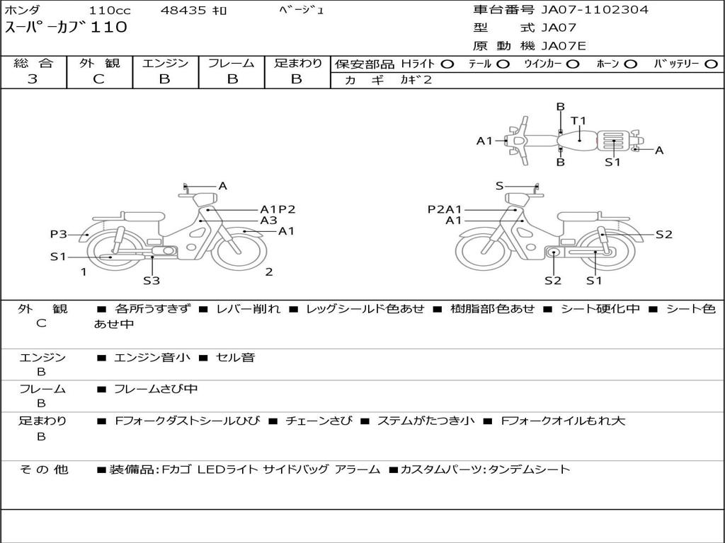 | Номер рамы / VIN | JA07-1102304 |