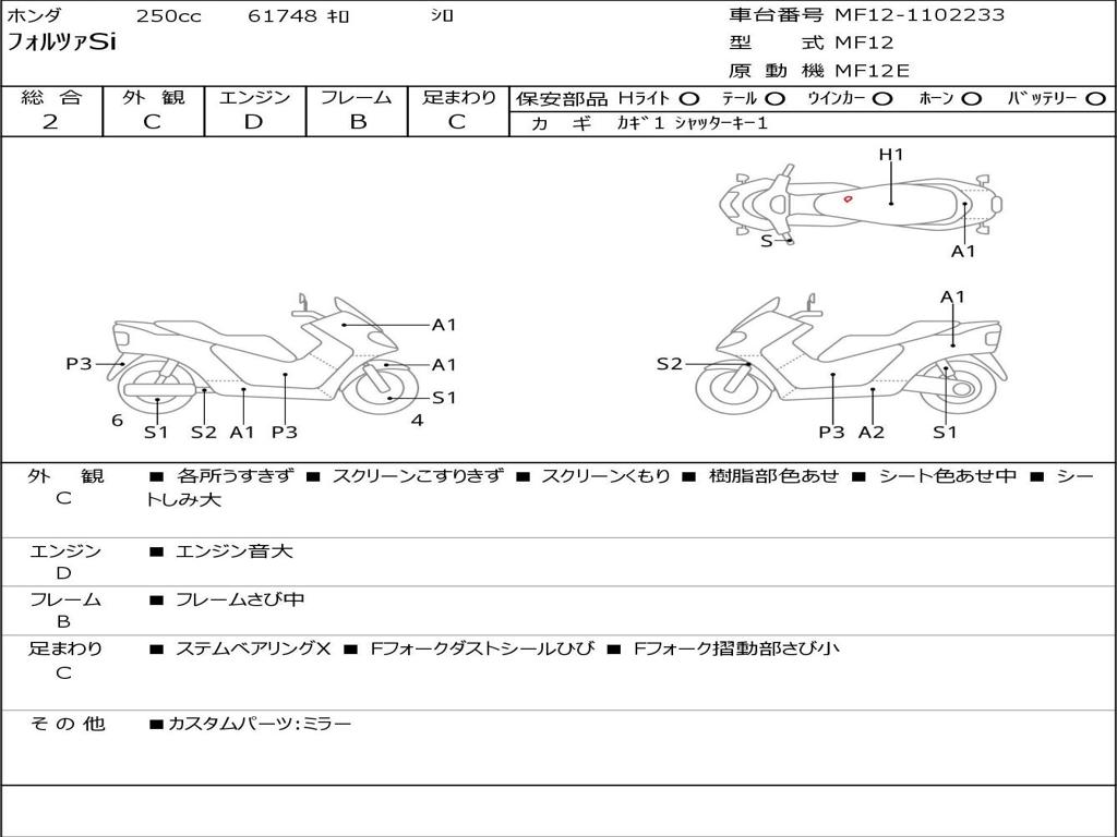 | Номер рамы / VIN | MF12-1102233 |