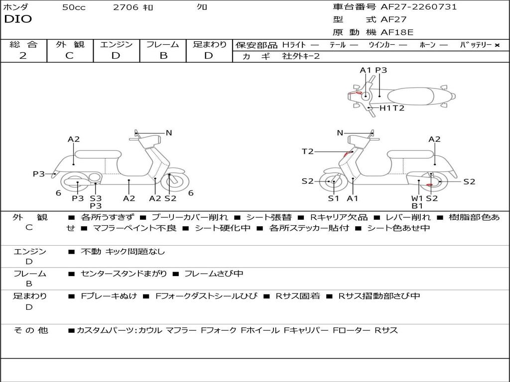 | Номер рамы / VIN | AF27-2260731 |