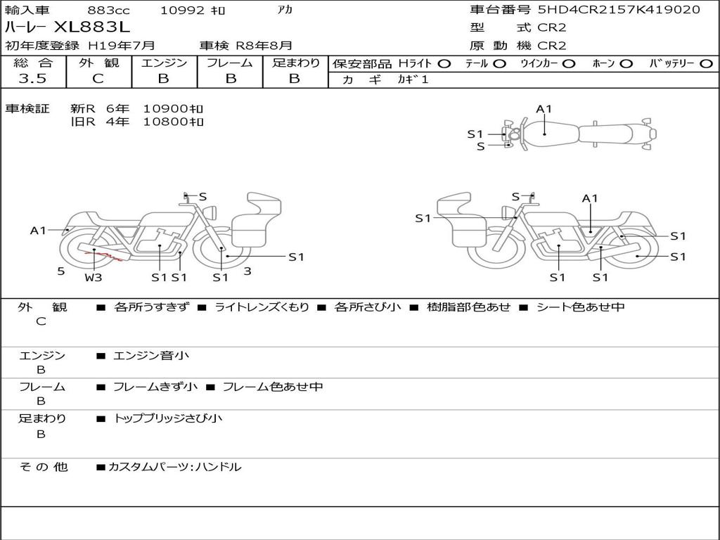 | Номер рамы / VIN | 5HD4CR2157K419020 |