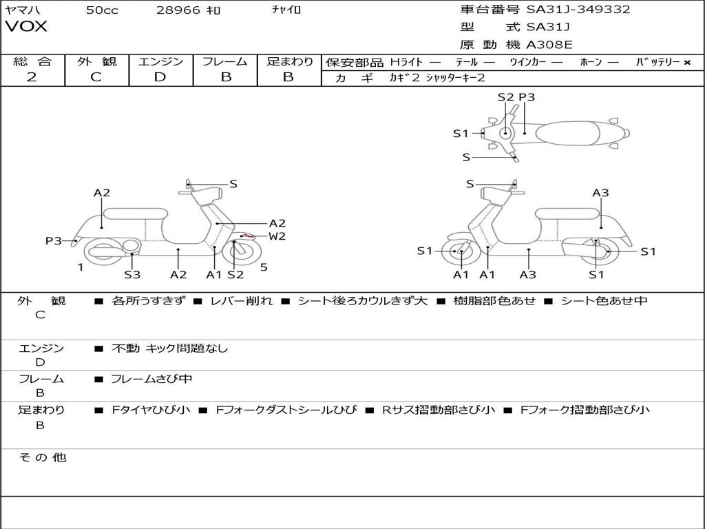 | Номер рамы / VIN | SA31J-349332 |
