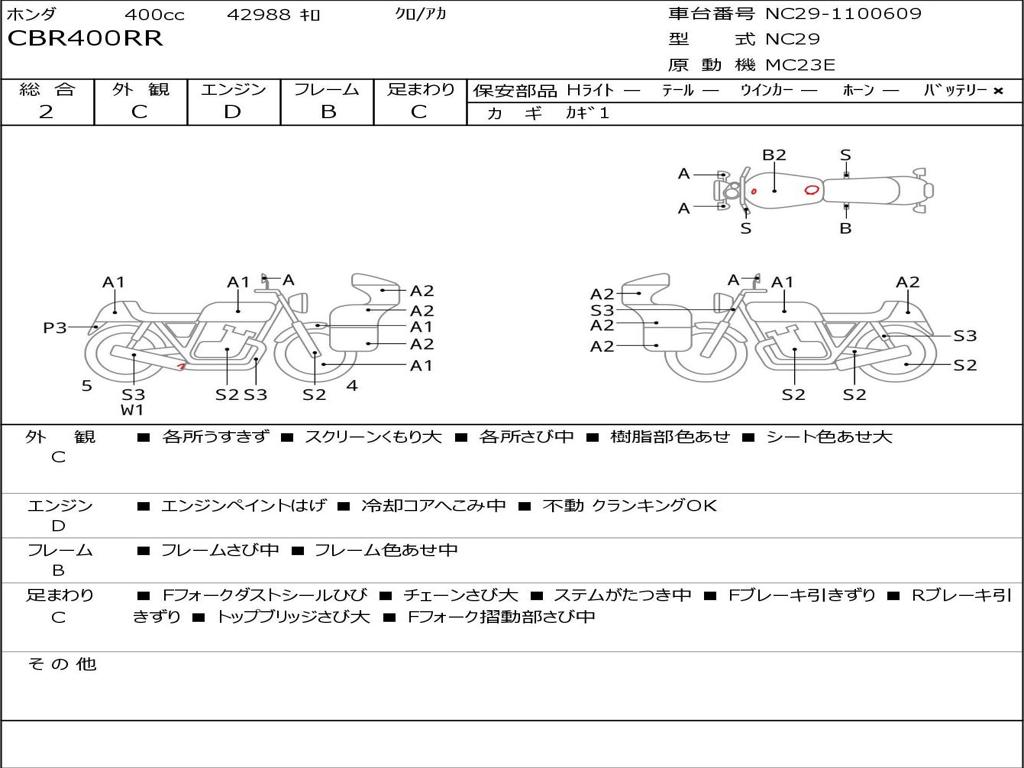 | Номер рамы / VIN | NC29-1100609 |