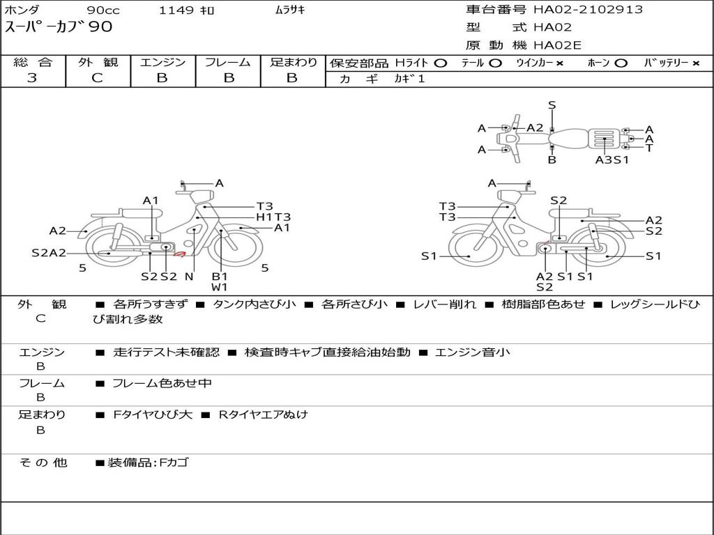 | Номер рамы / VIN | HA02-2102913 |