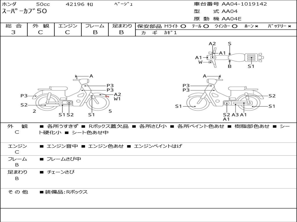 | Номер рамы / VIN | AA04-1019142 |