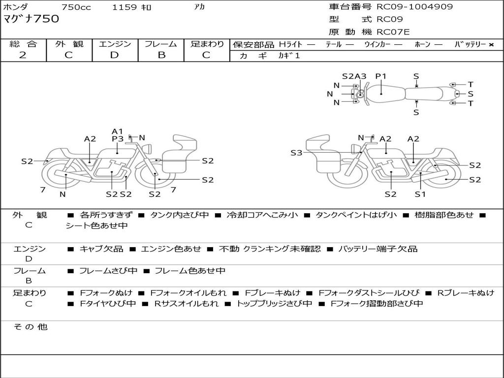 | Номер рамы / VIN | RC09-1004909 |