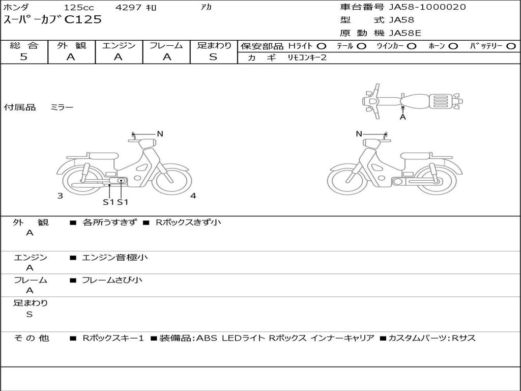 | Номер рамы / VIN | JA58-1000020 |