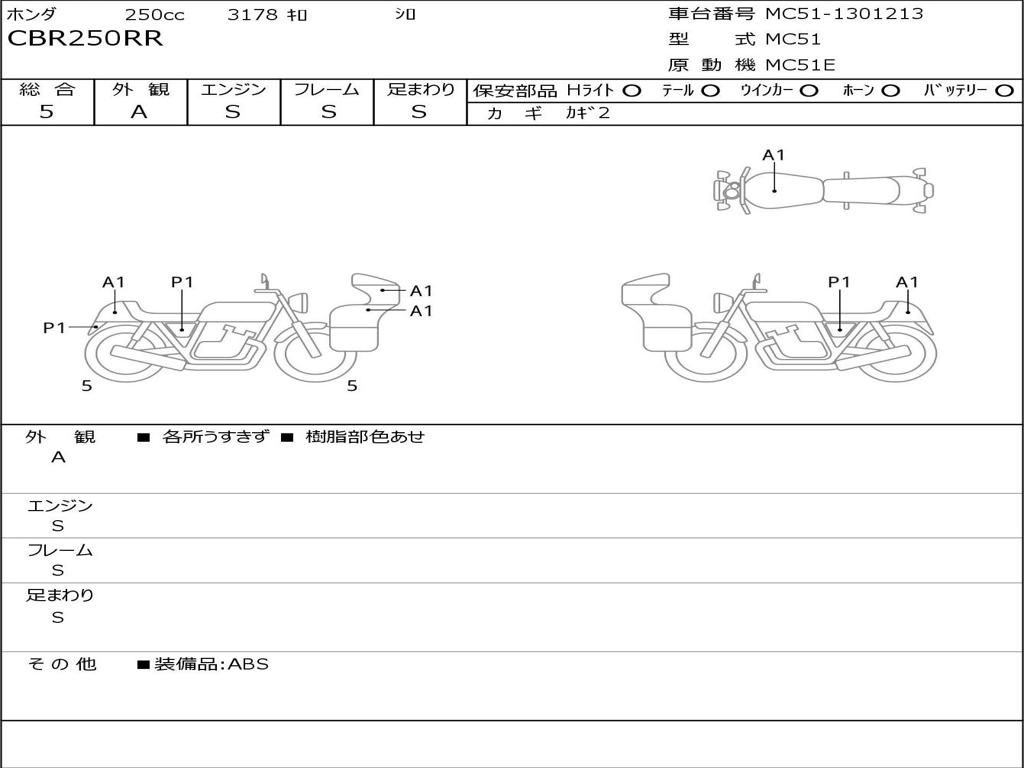 | Номер рамы / VIN | MC51-1301213 |