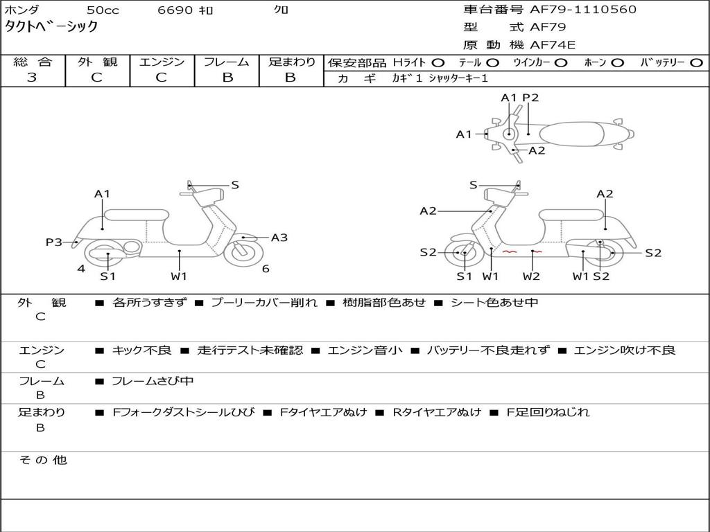 | Номер рамы / VIN | AF79-1110560 |