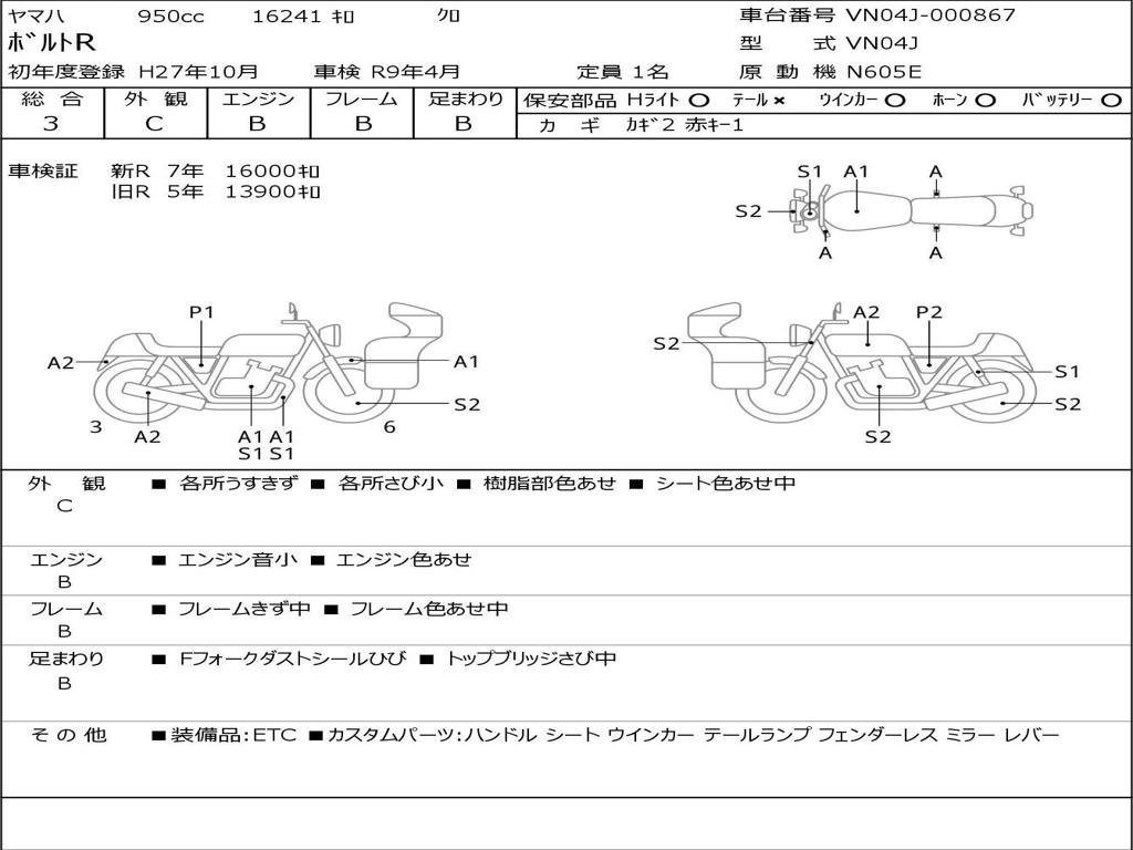 | Номер рамы / VIN | VN04J-000867 |