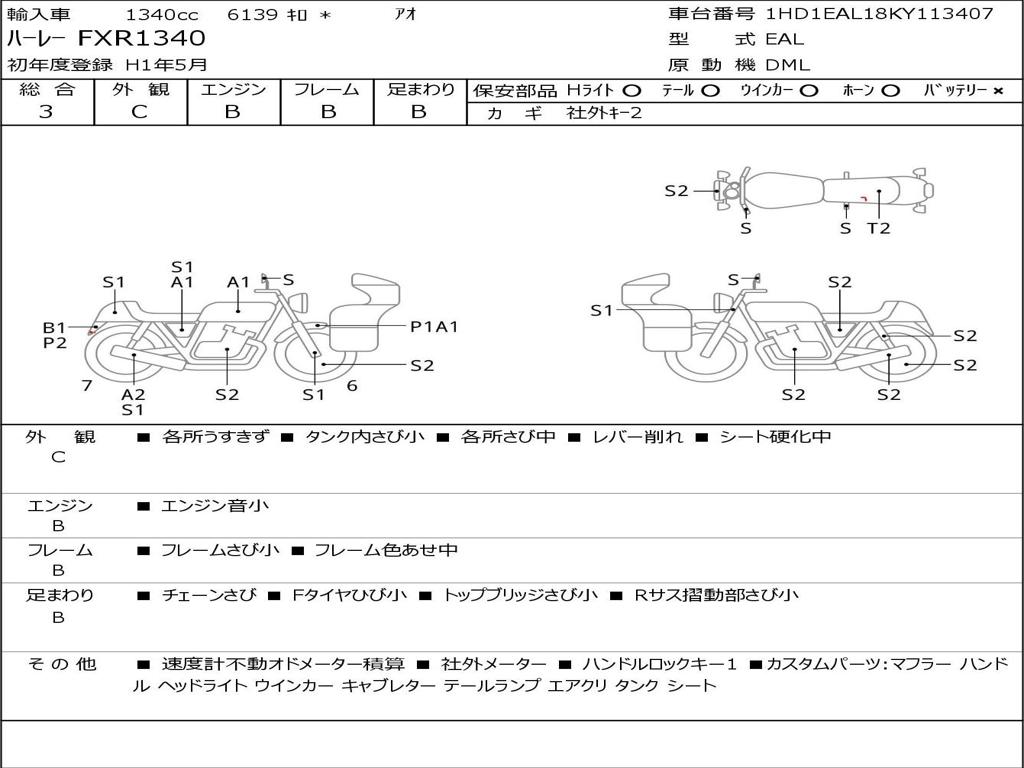 | Номер рамы / VIN | 1HD1EAL18KY113407 |