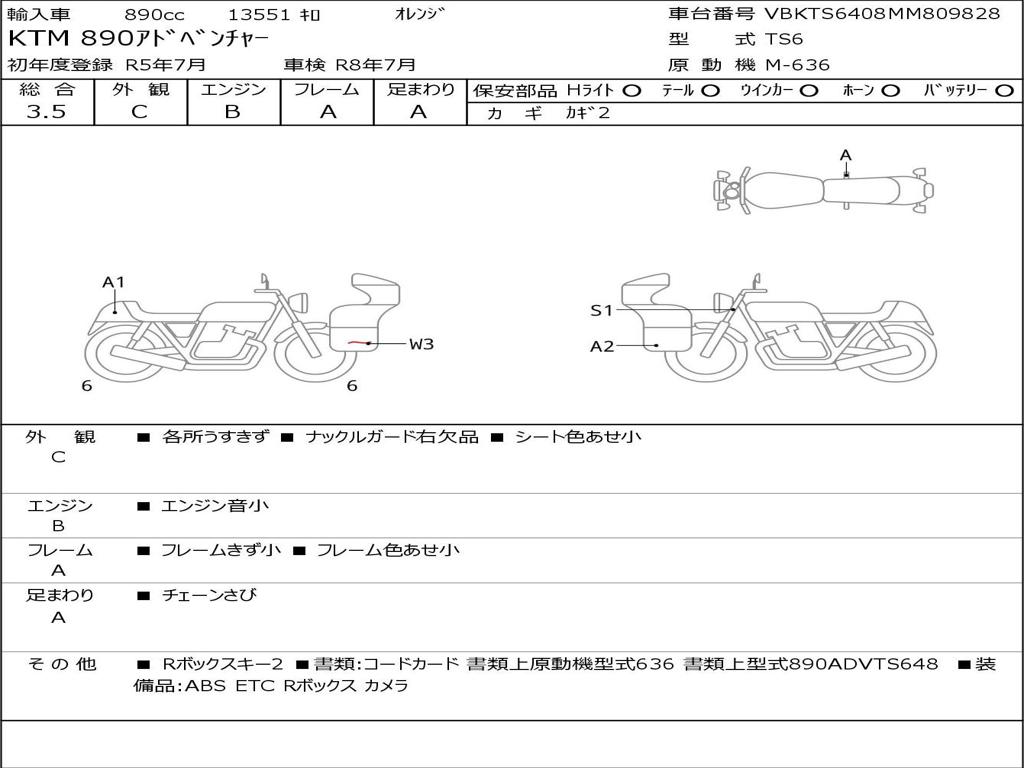 | Номер рамы / VIN | VBKTS6408MM809828 |
