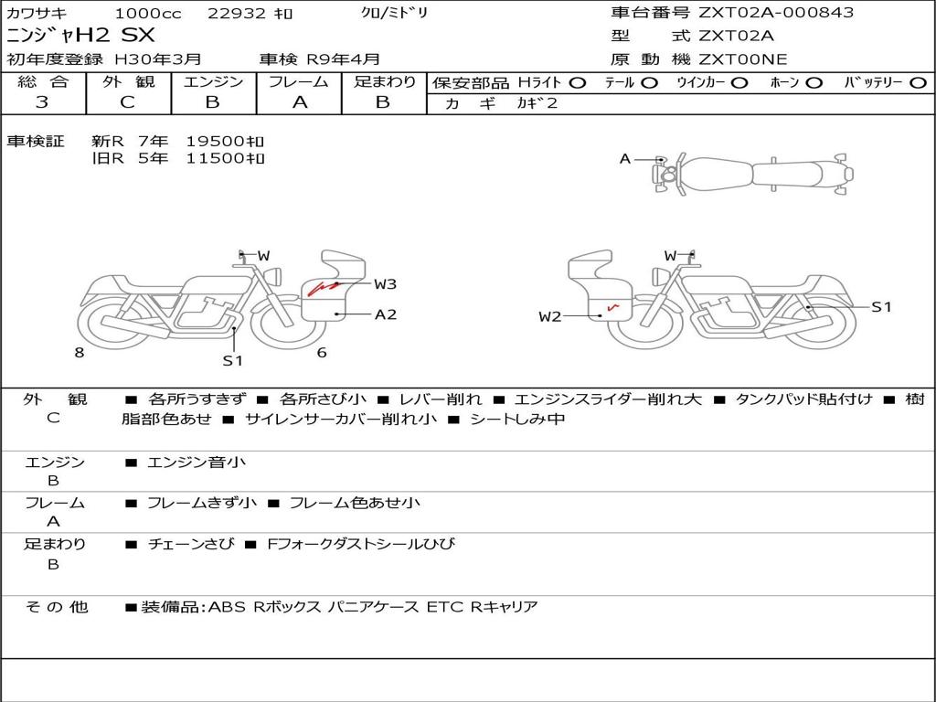 | Номер рамы / VIN | ZXT02A-000843 |