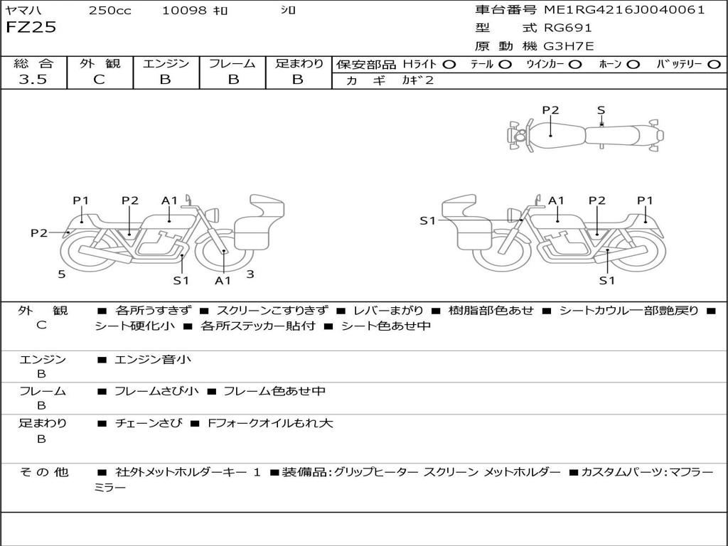 | Номер рамы / VIN | ME1RG4216J0040061 |