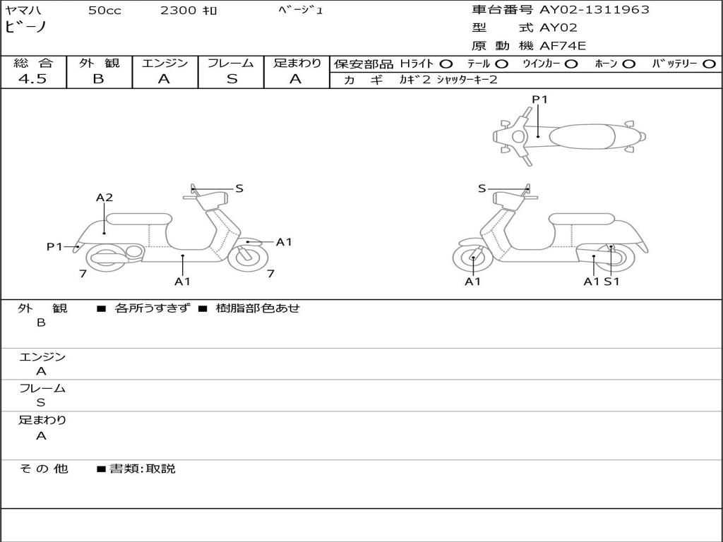 | Номер рамы / VIN | AY02-1311963 |