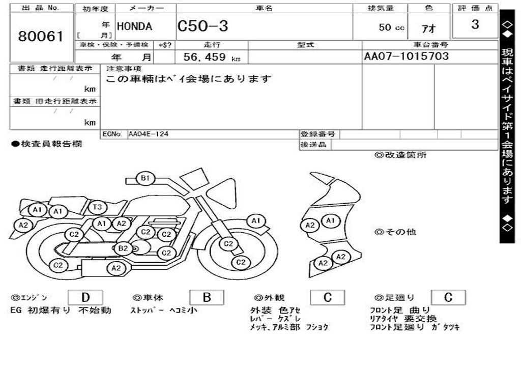 | Номер рамы / VIN | AA07-1015703 |