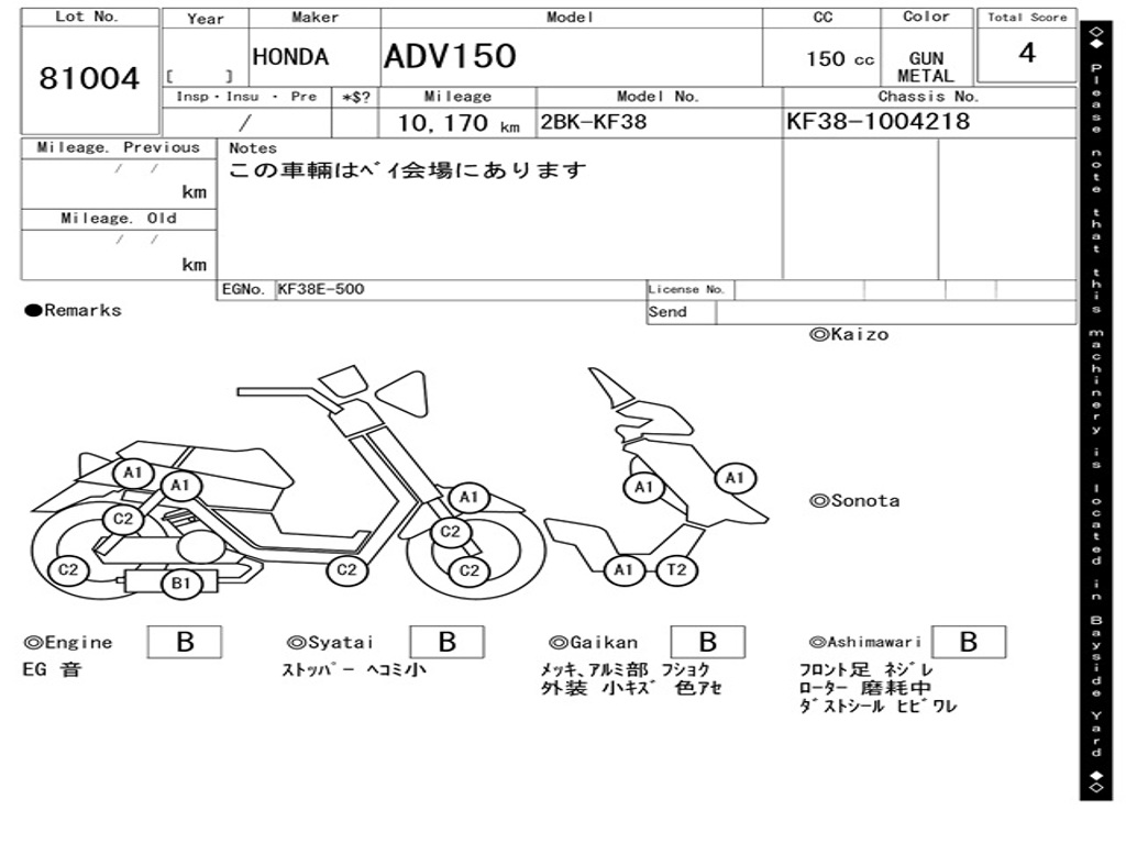 | Номер рамы / VIN | KF38-1004218 |