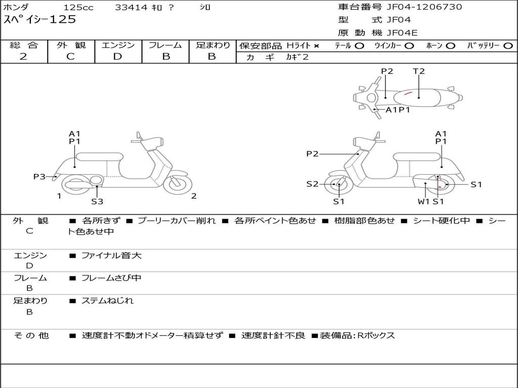 | Номер рамы / VIN | JF04-1206730 |