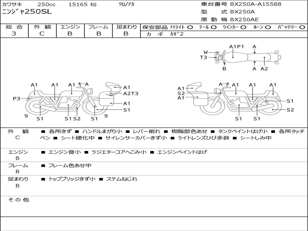 | Номер рамы / VIN | BX250A-A15588 |