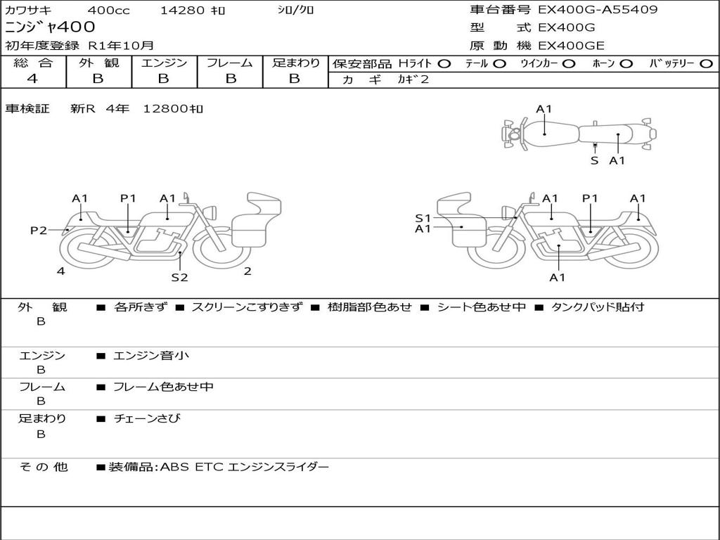 | Номер рамы / VIN | EX400G-A55409 |