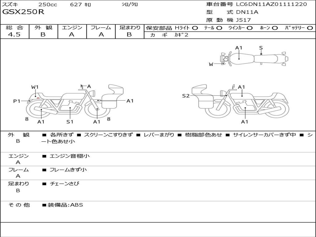 | Отметка об участии мотоцикла в авариях | Мотоцикл не участвовал в ДТП |