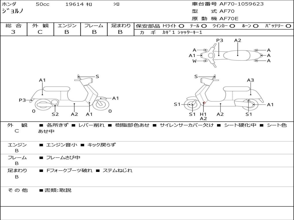 | Номер рамы / VIN | AF70-1059623 |
