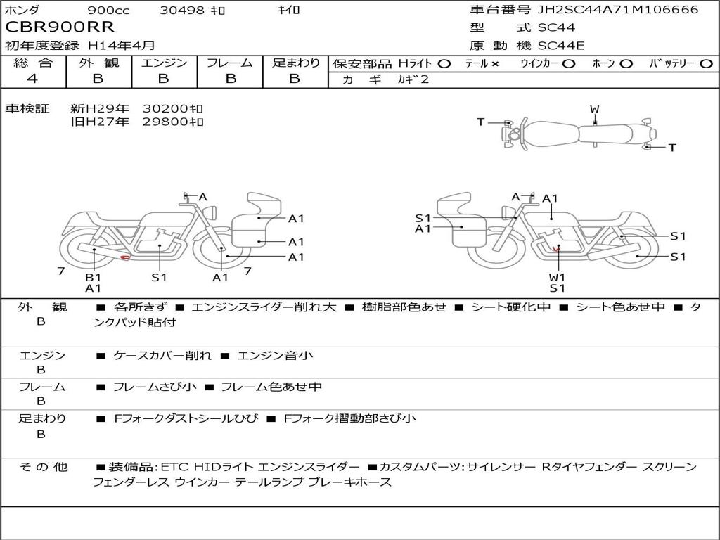| Номер рамы / VIN | JH2SC44A71M106666 |