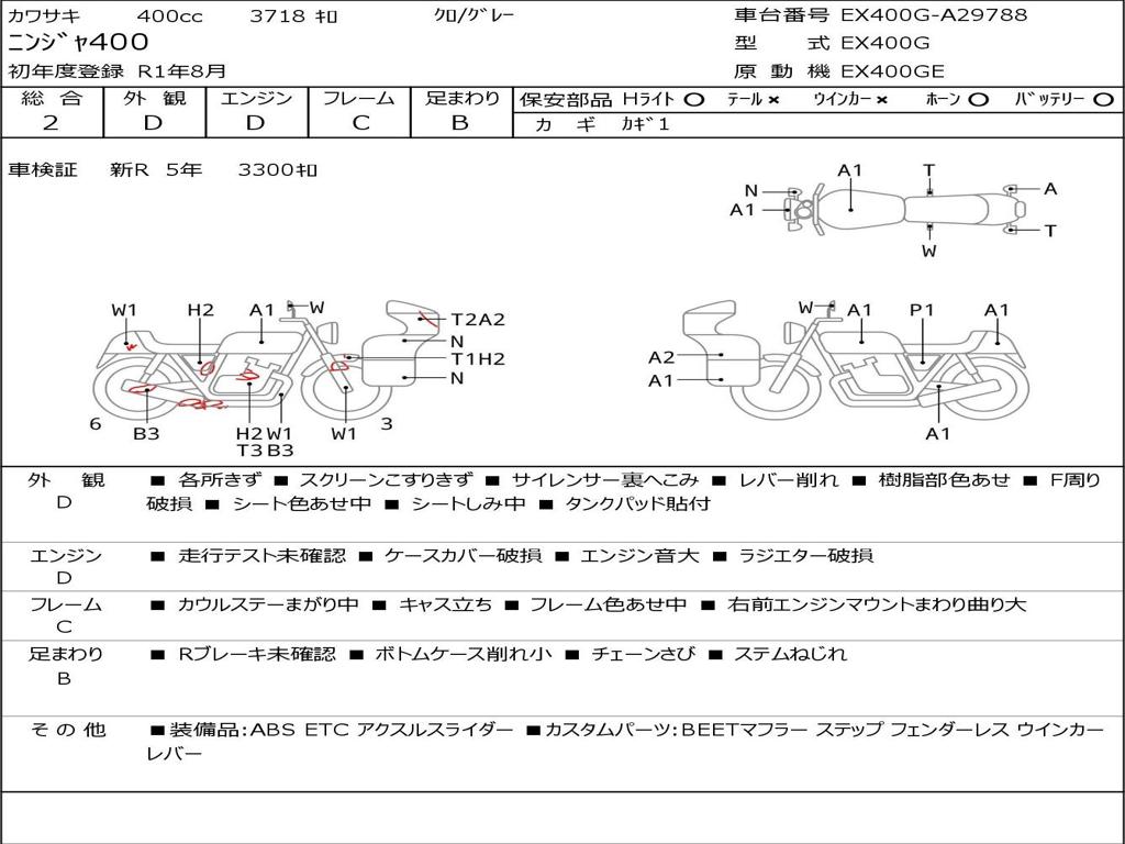 | Номер рамы / VIN | EX400G-A29788 |