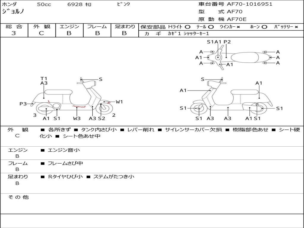 | Номер рамы / VIN | AF70-1016951 |