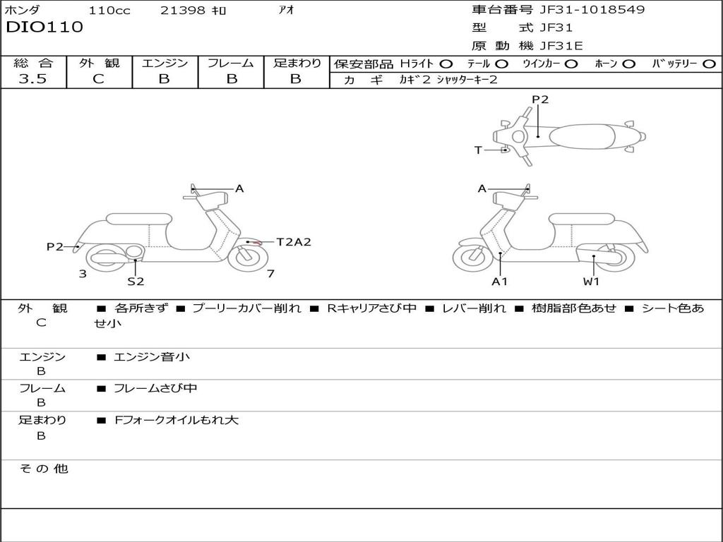 | Номер рамы / VIN | JF31-1018549 |
