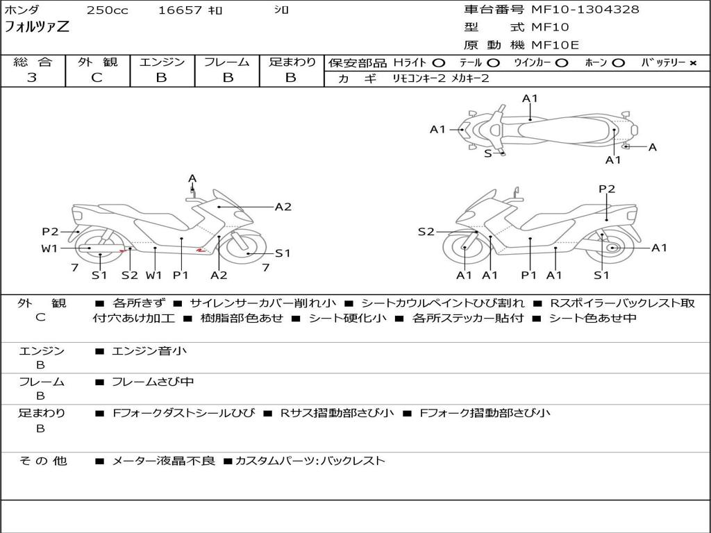 | Номер рамы / VIN | MF10-1304328 |