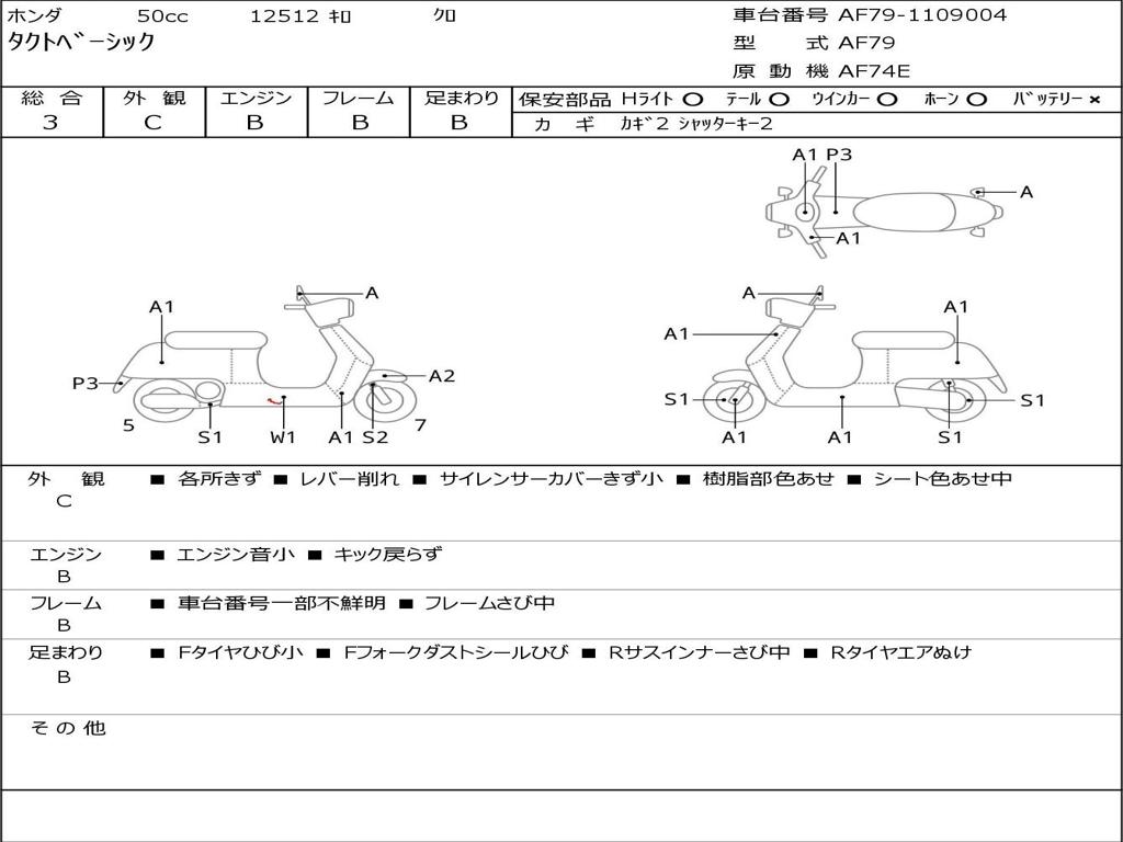 | Номер рамы / VIN | AF79-1109004 |