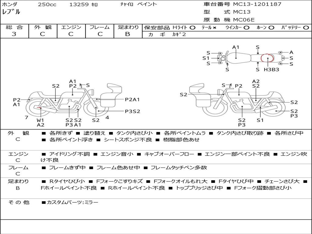 | Номер рамы / VIN | MC13-1201187 |