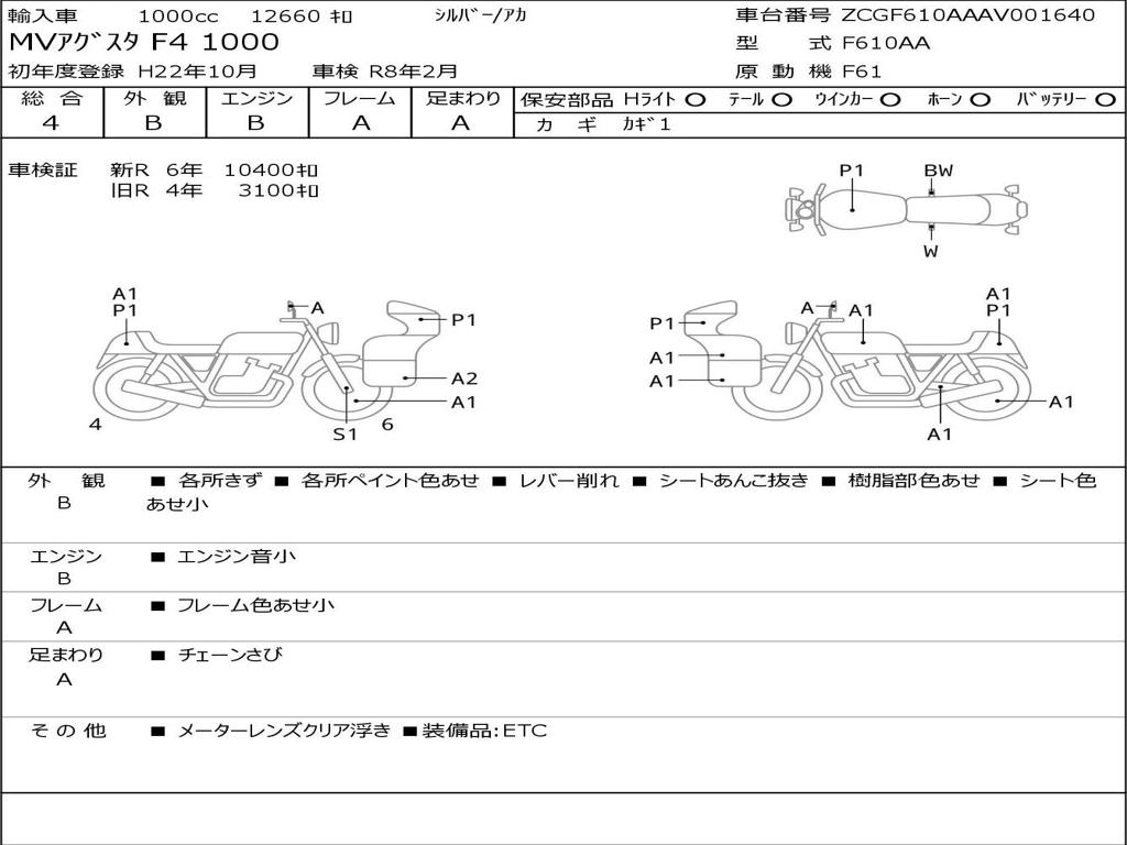 | Номер рамы / VIN | ZCGF610AAAV001640 |