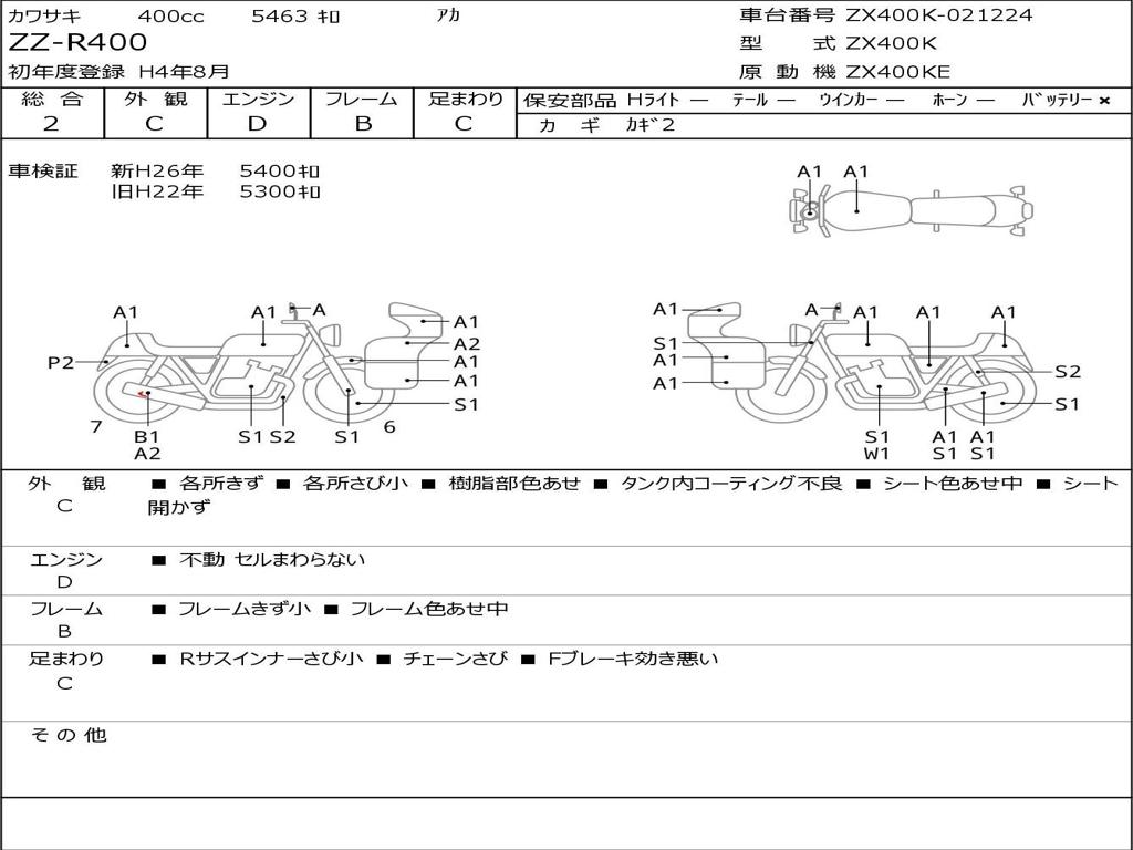 | Номер рамы / VIN | ZX400K-021224 |
