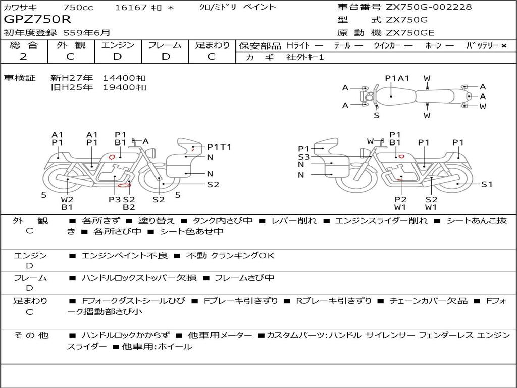 | Номер рамы / VIN | ZX750G-002228 |