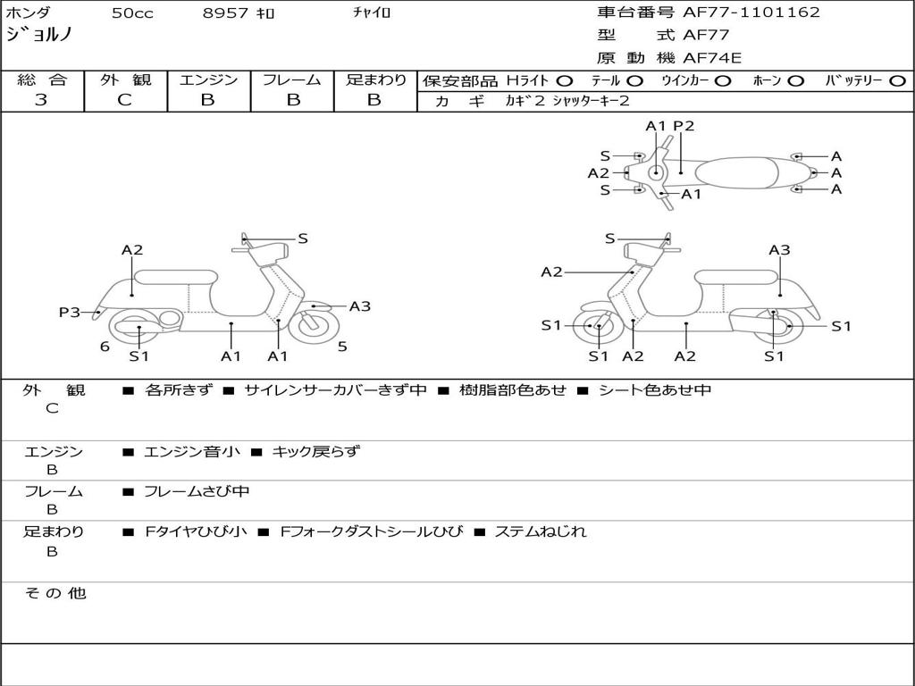 | Номер рамы / VIN | AF77-1101162 |