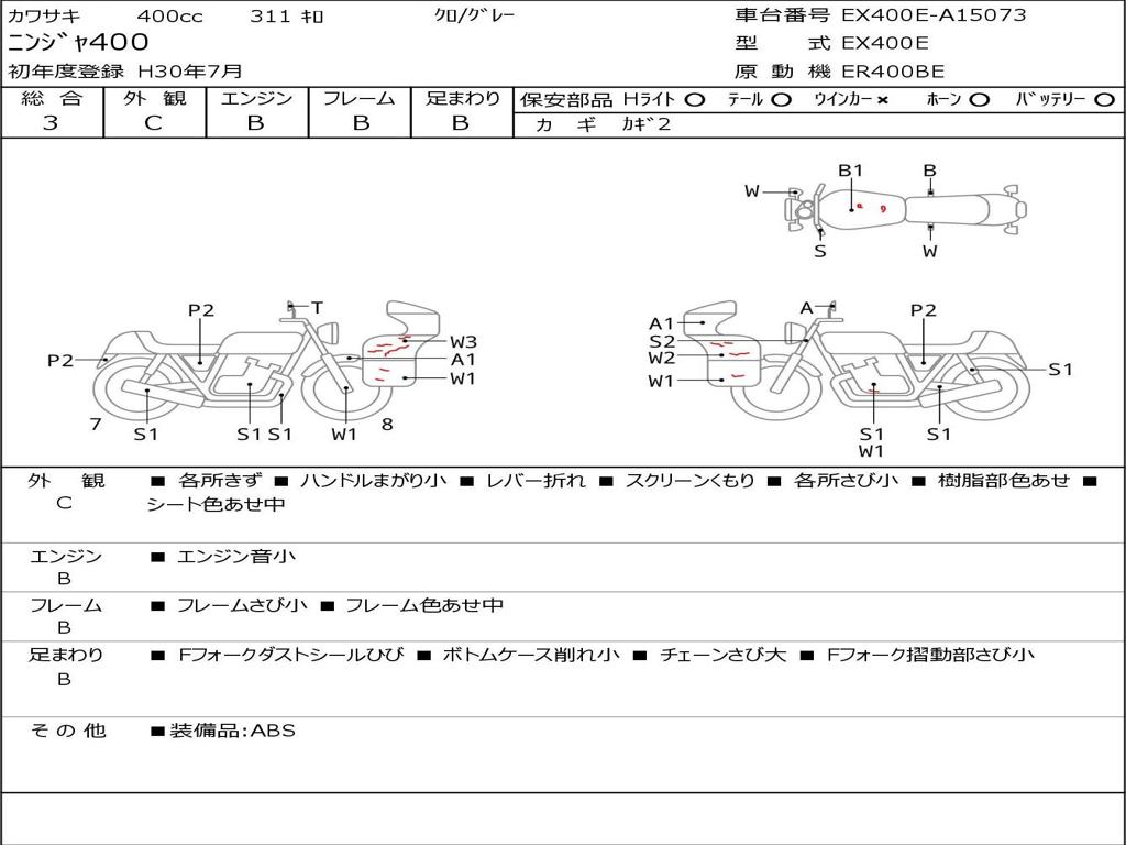 | Номер рамы / VIN | EX400E-A15073 |