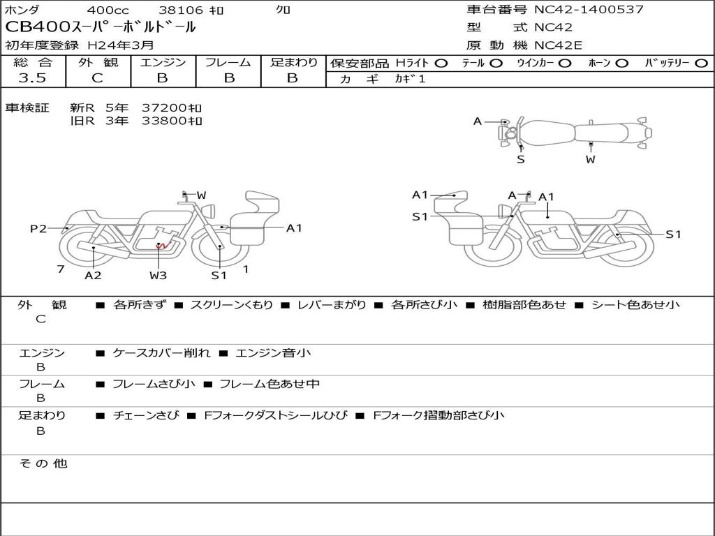 | Номер рамы / VIN | NC42-1400537 |