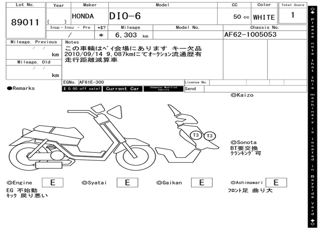 | Номер рамы / VIN | AF62-1005053 |