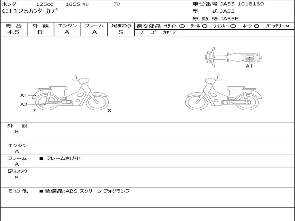 | Номер рамы / VIN | JA55-1018169 |