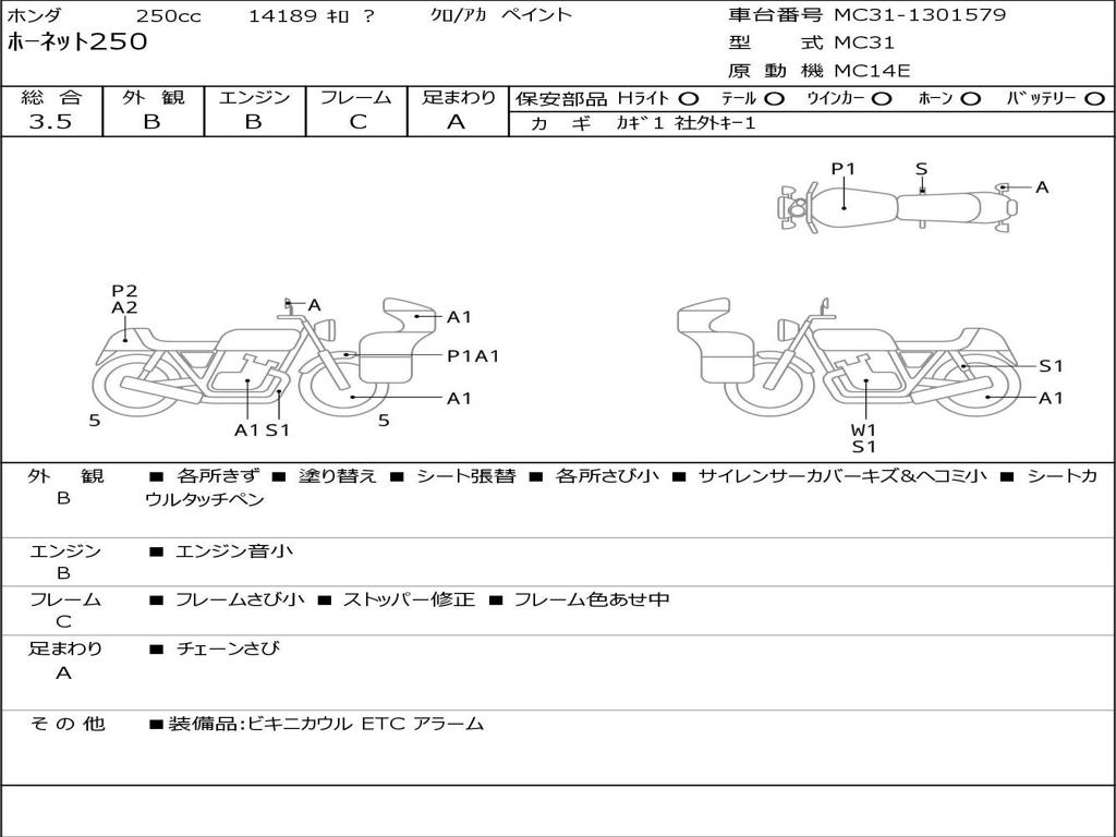 | Номер рамы / VIN | MC31-1301579 |
