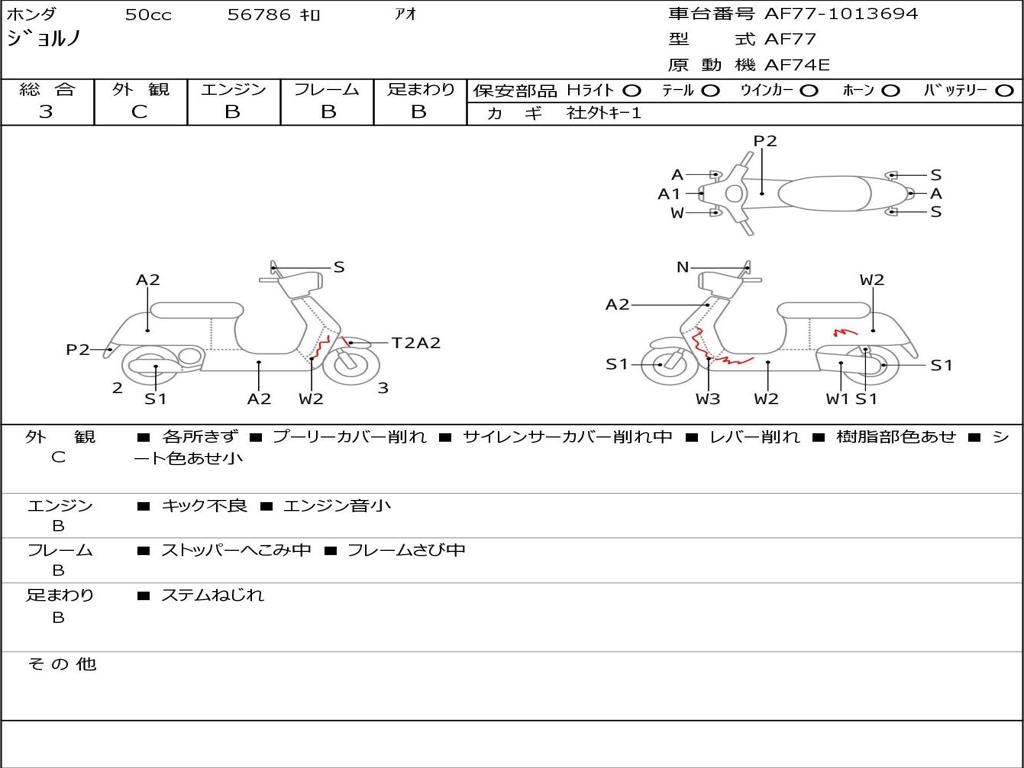 | Номер рамы / VIN | AF77-1013694 |