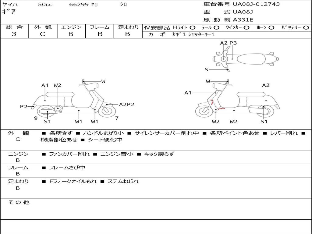 | Номер рамы / VIN | UA08J-012743 |