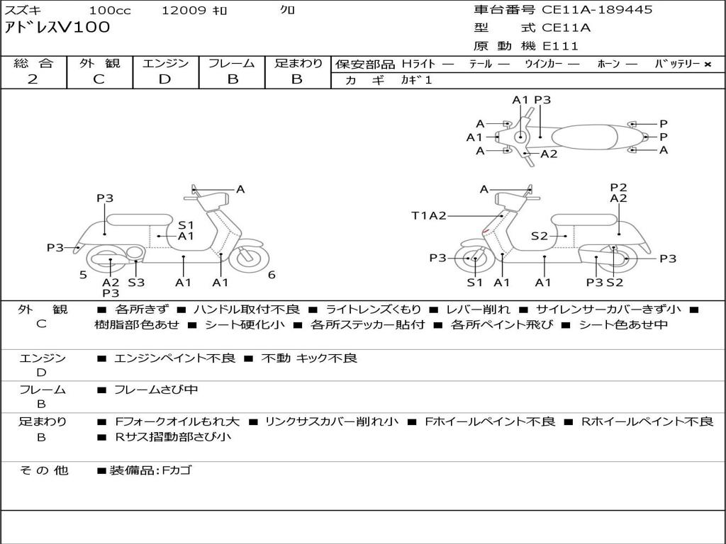 | Номер рамы / VIN | CE11A-189445 |