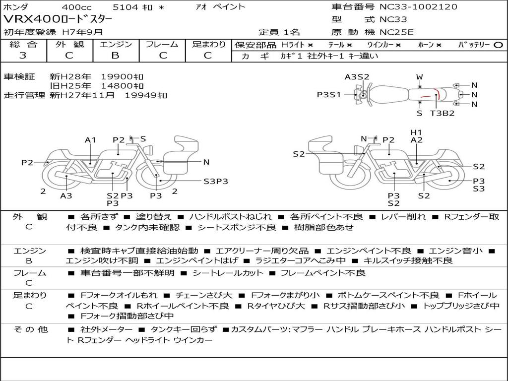 | Номер рамы / VIN | NC33-1002120 |