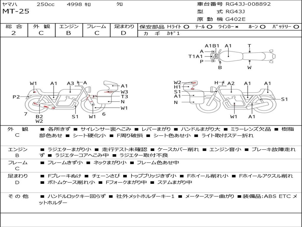 | Номер рамы / VIN | RG43J-008892 |